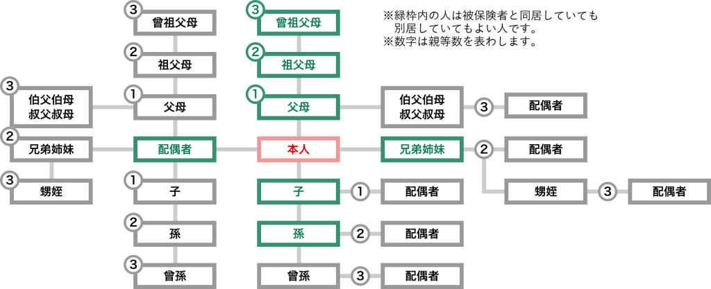 被扶養者となれる家族の範囲は、3親等以内の親族と定められています。