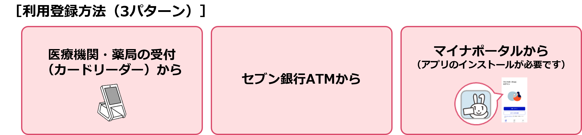 自治体でマイナンバーカードを申請・取得されたあと、健康保険証利用登録が必要になります。健康保険証利用登録の方法は以下いずれかになります。